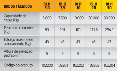 Disponível nas capacidades: 5,0 | 7,5 | 10 | 20 | 30 ton.